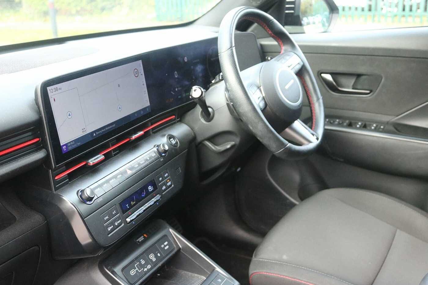This 2023 Hyundai KONA h GDi N Line presents an exceptional opportunity with its remarkably low mileage of just 8702 miles. This one owner vehicle boasts a 1.6 litre petrol hybrid engine, adhering to Euro 6 emissions standards, and is presented in the sporty N Line trim. Inside, you'll find a host of convenient features designed for modern driving, including a wireless phone charging pad, heated rear seats for enhanced comfort, and a heated steering wheel for those cooler mornings. Stay connected effortlessly with Bluetooth connectivity featuring voice recognition, and enjoy seamless integration of your smartphone through Apple CarPlay and Android Auto. The highlights of this KONA truly set it apart, indicating its superior value compared to similar vehicles. With an impressive fuel economy of 60 miles per gallon, you can expect fewer trips to the petrol station. Furthermore, its low insurance group rating means more affordable ownership, and its low CO2 emissions contribute to a more environmentally friendly drive. This combination of efficiency, affordability, and advanced features makes this Hyundai KONA a compelling choice.